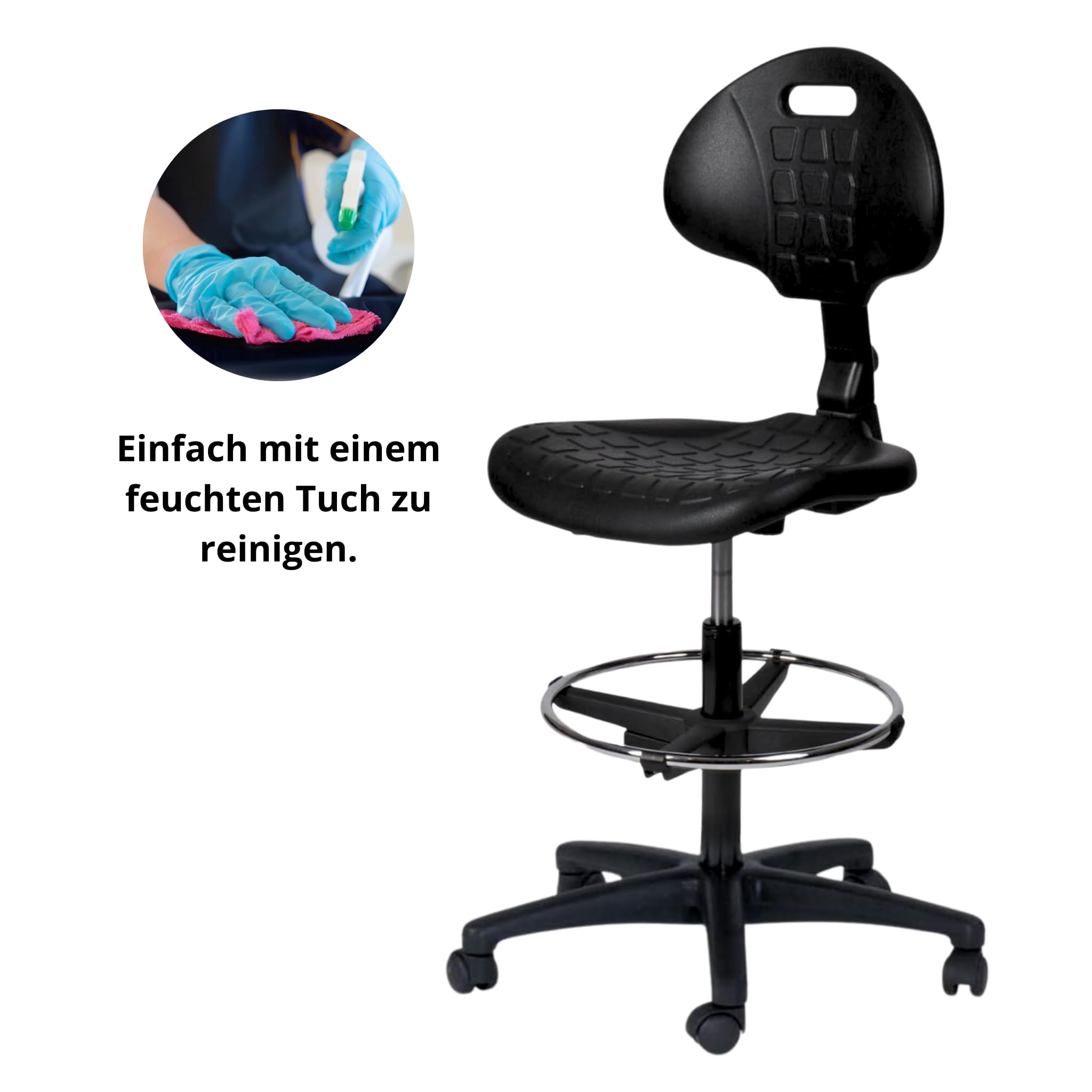 Topsit IND102 – Ergonomischer Arbeitsstuhl & Bürohocker | Höhenverstellbar, Rückenlehne & Fußring, Leicht zu reinigen